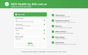SEO Hälsa Av AIO.com.aiär en gratis programvara för Chrome, som tillhör kategorin 'Tillägg & Verktyg'.